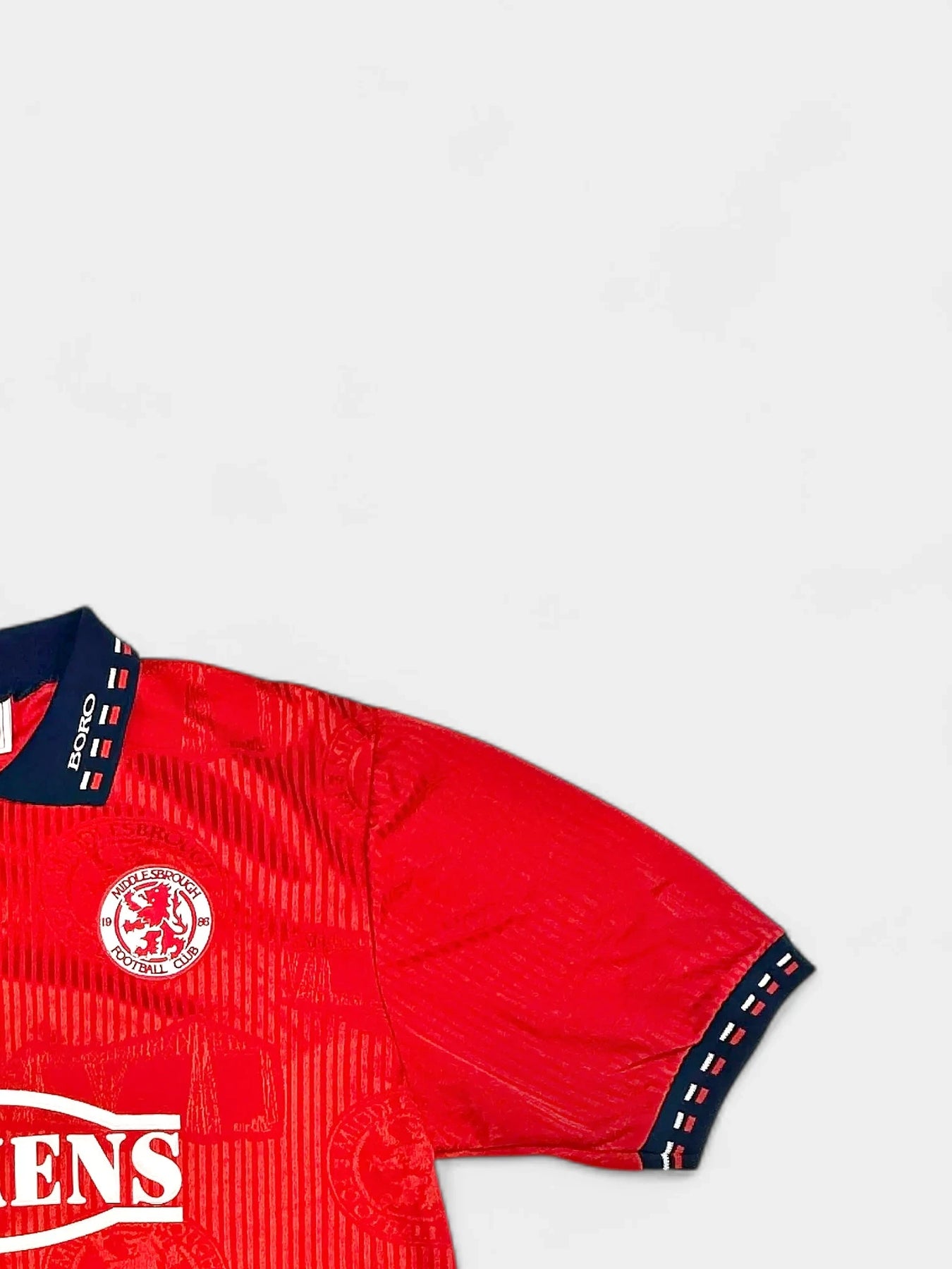 Iconic Middlesbrough shirt, designed by Erreà and worn during the  The Championship winning season in which 'Boro' were managed by Bryan Robson.